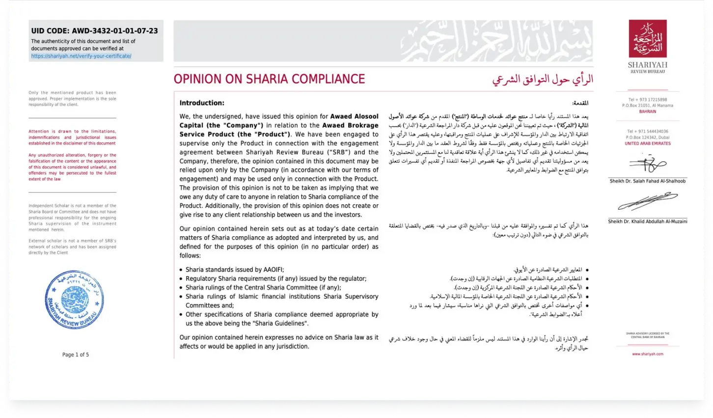 The Shariah Committee is responsible for reviewing and auditing Shariah screening methods for investments in returns to make it easier to find Shariah-compliant investment opportunities